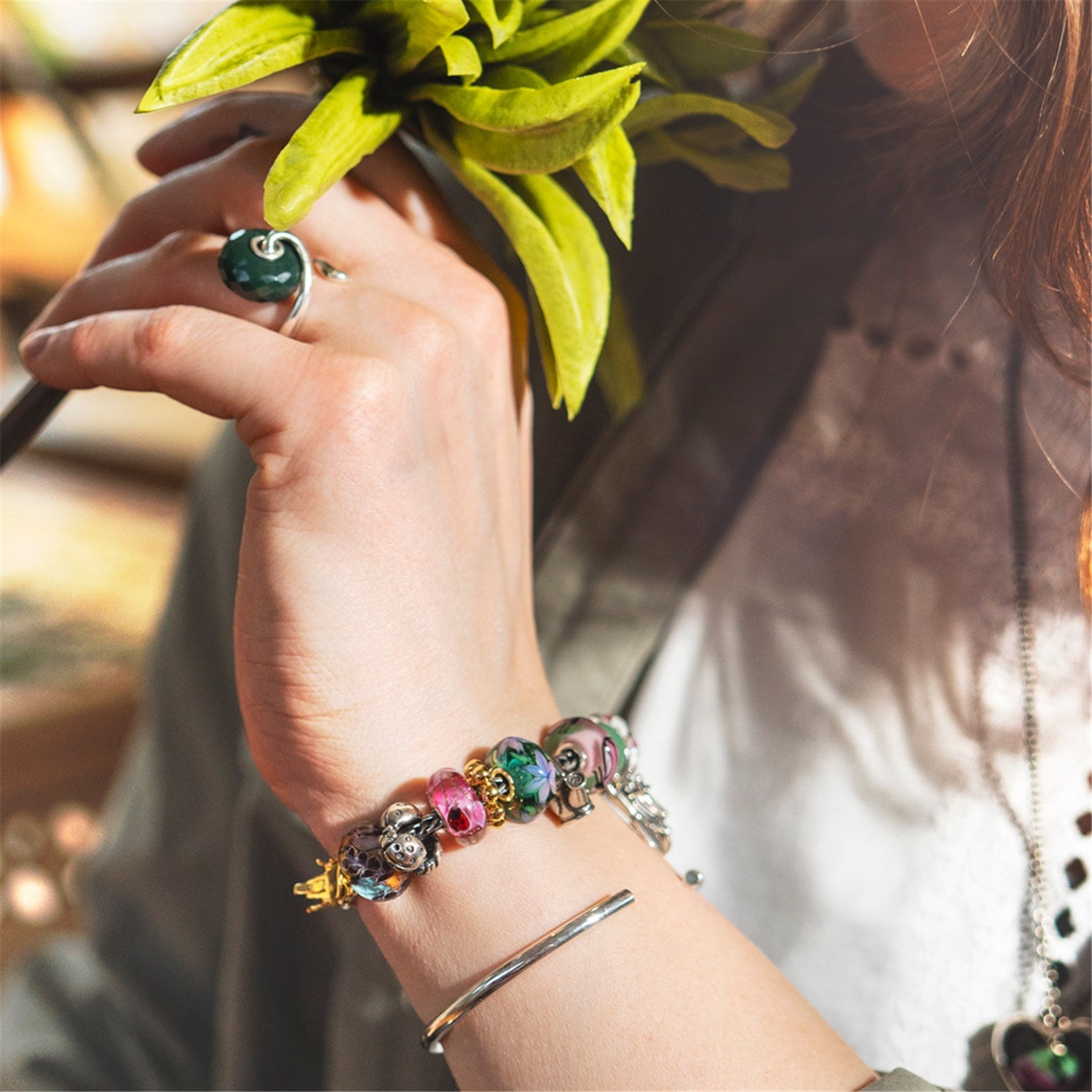 An elegant design of small spheres arranged around a centre, reflecting light from every angle. Placed between glass or gemstones, it creates a beautiful bridge and a harmonious flow in your design.