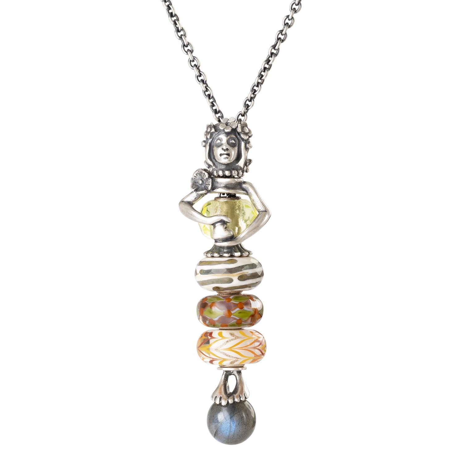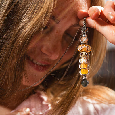 Express yourself by placing your favorite beads in different colors, sizes and textures to the lower part of the necklace. At the heart of the Guardian of Love, there is fun changing out round beads in different materials or colors.